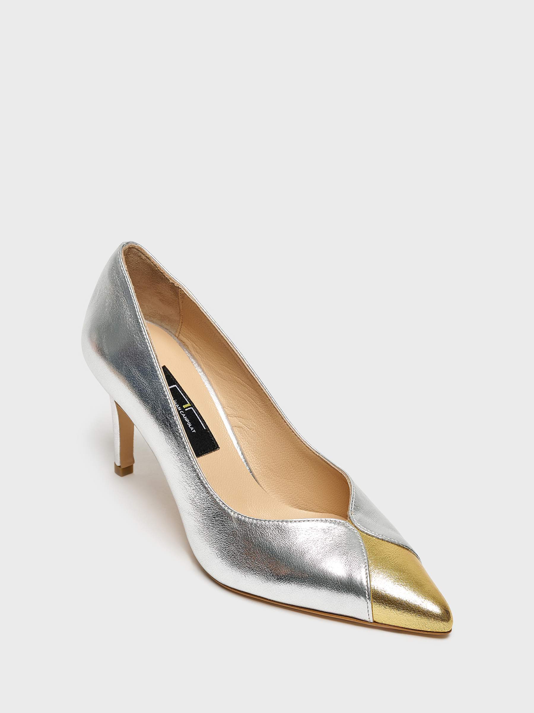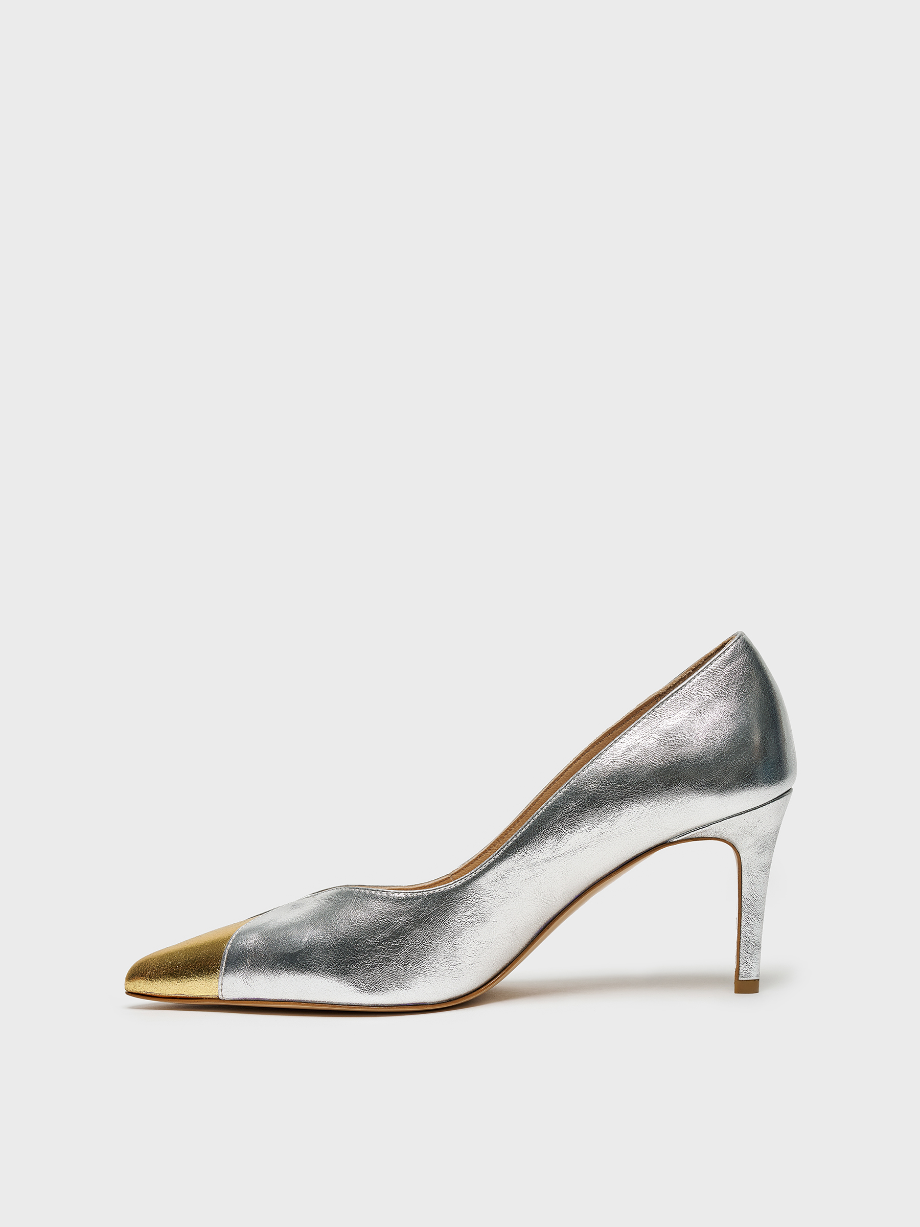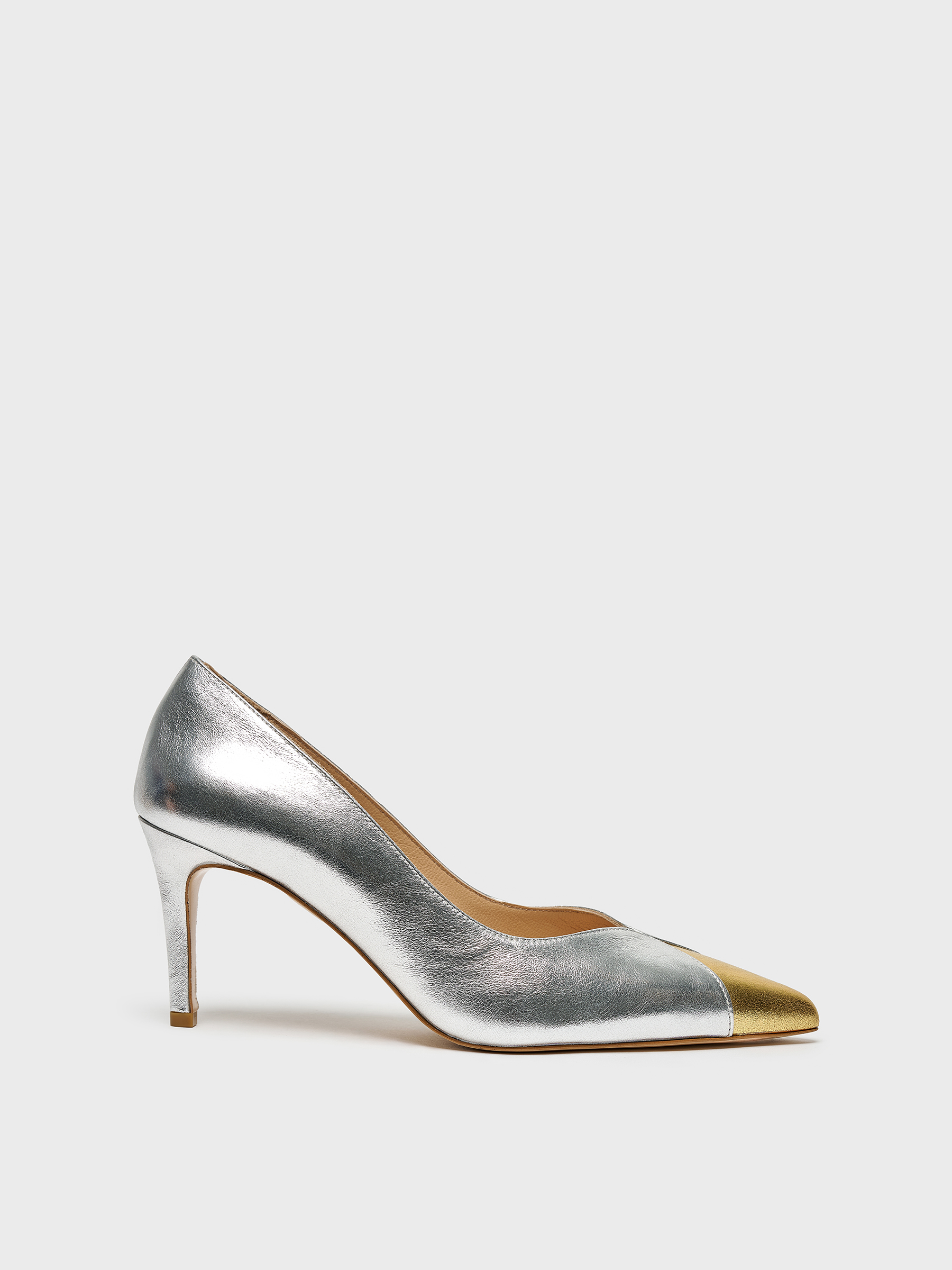 Bu gold ve gümüş deri stiletto, günlük kombinlerden özel davetlere kadar her anınıza uyum sağlar.
