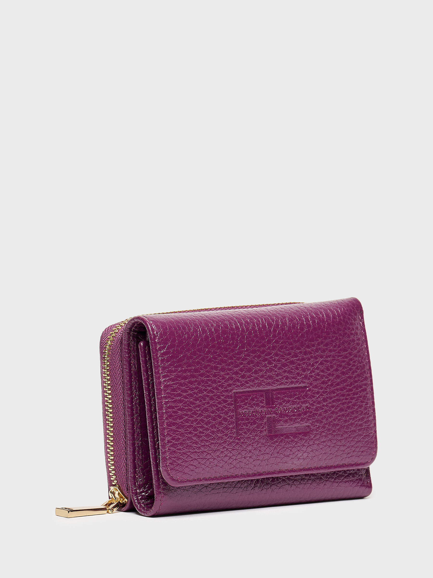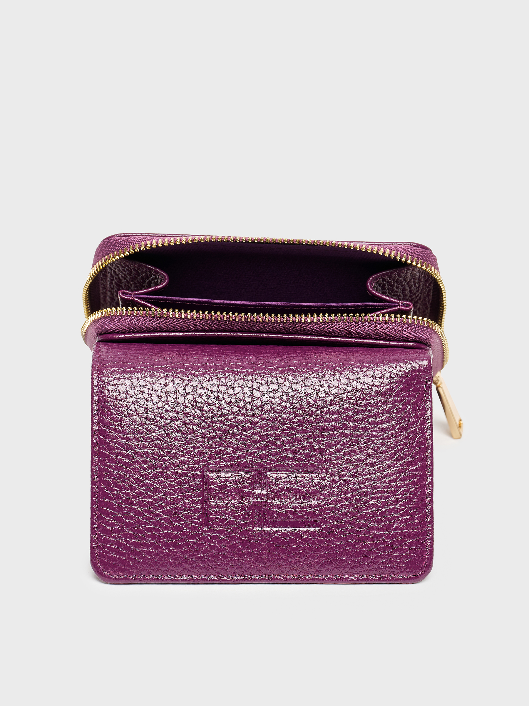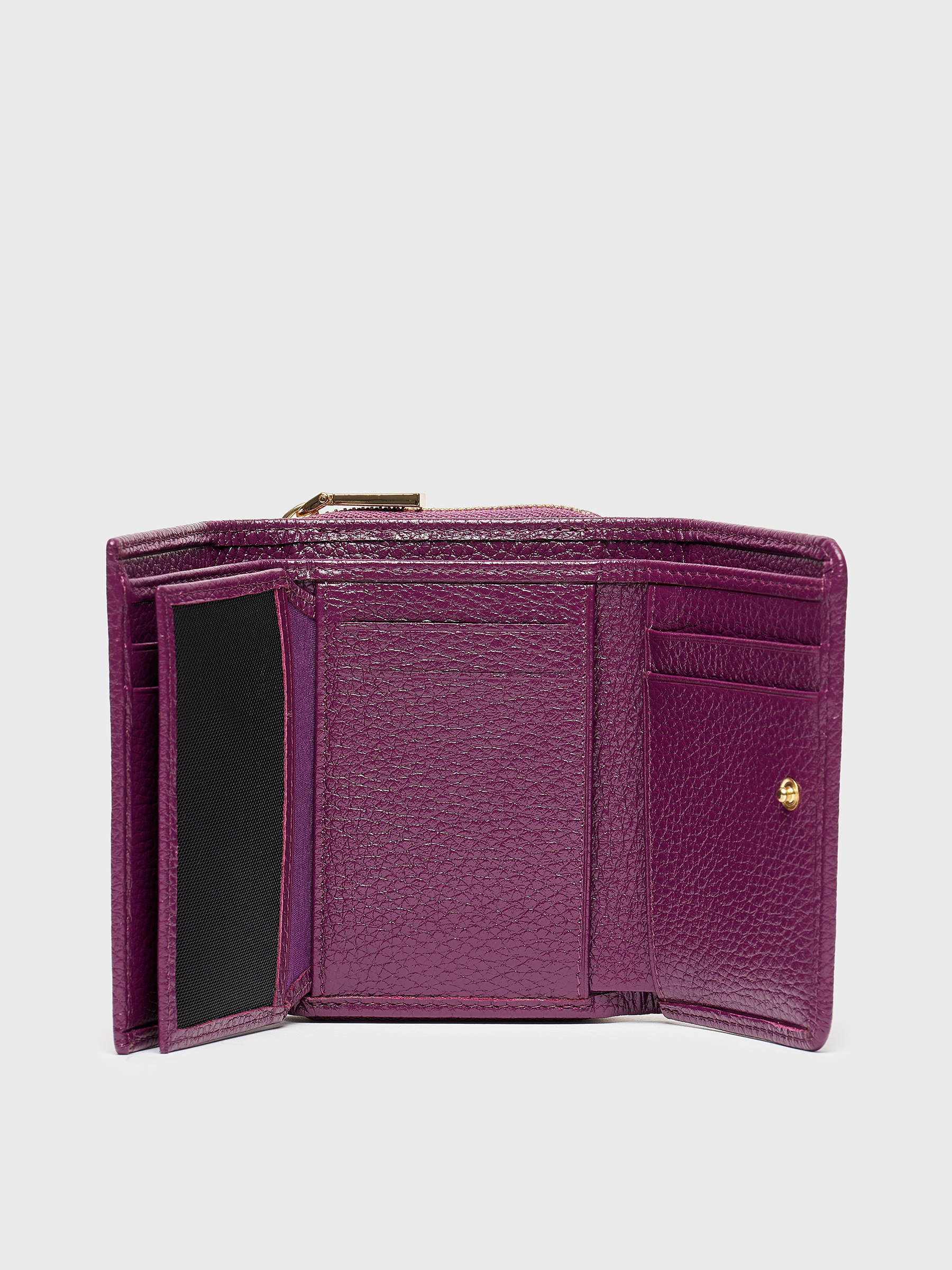 Mor rengiyle göz alıcı ama abartısız. Altın renkli fermuar detayı ise zarif bir tamamlayıcı. İç kısmında yer alan kart bölmeleri sayesinde ihtiyacınız olan her şey düzenli bir şekilde elinizin altında.