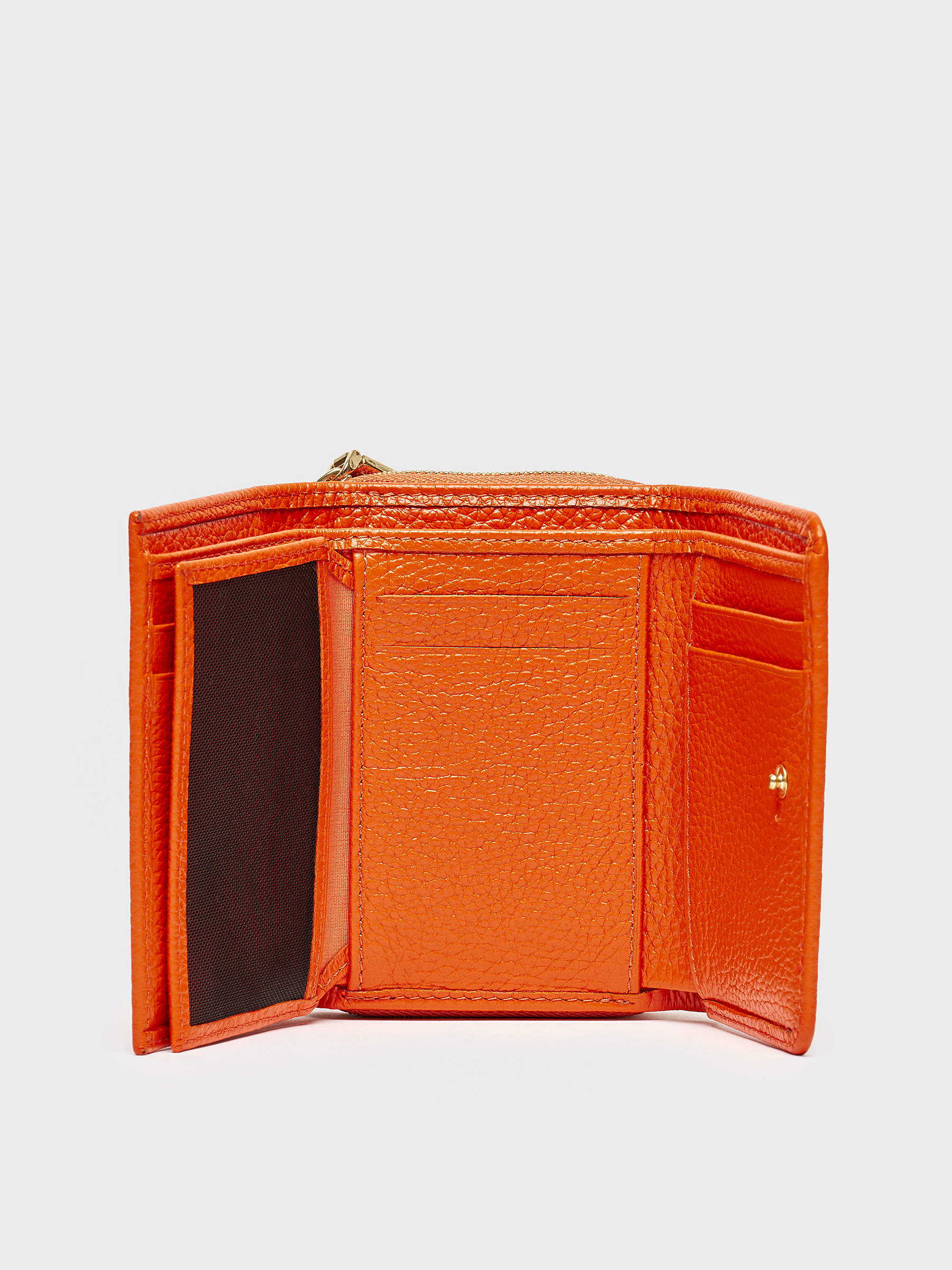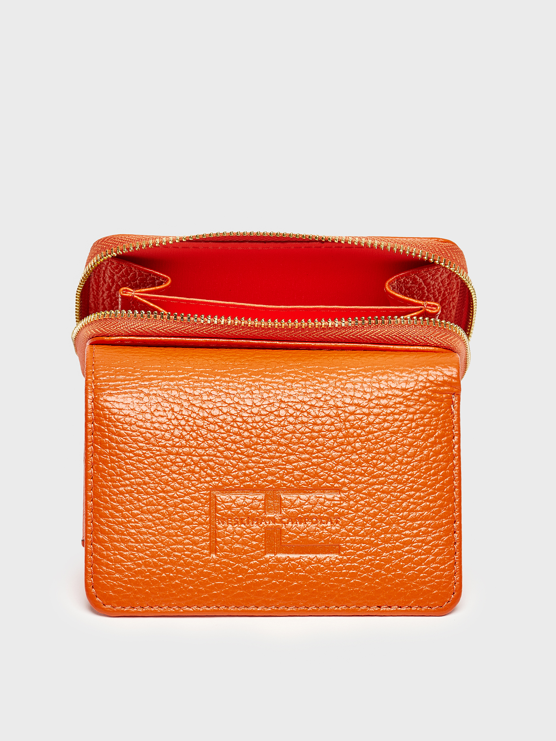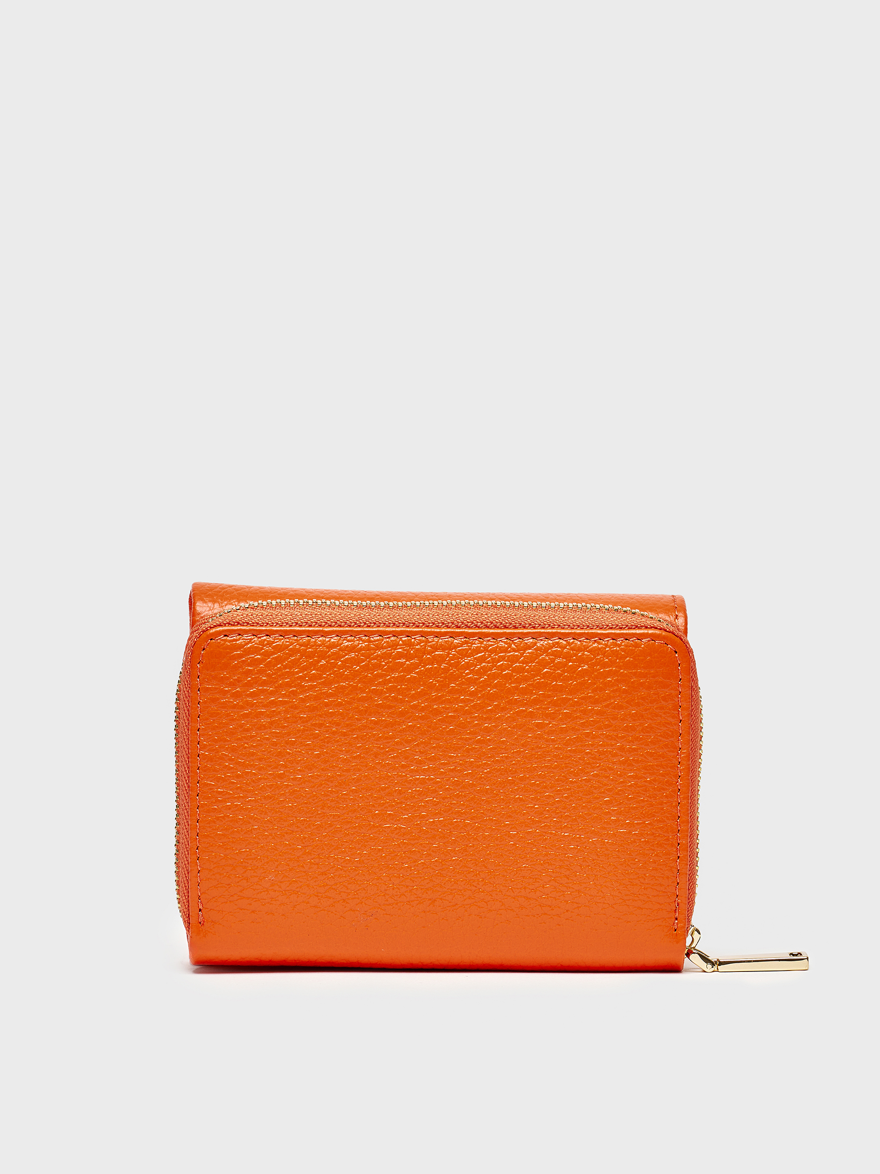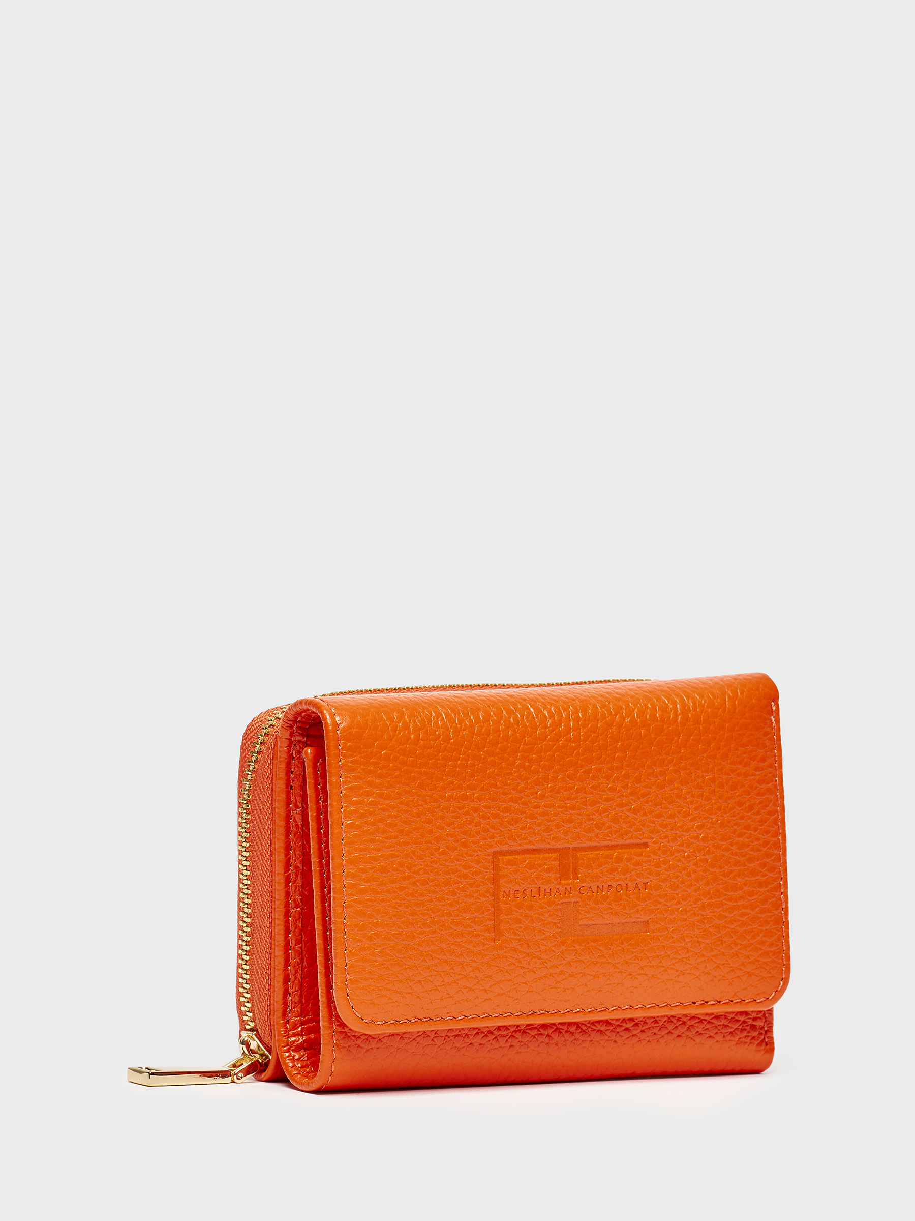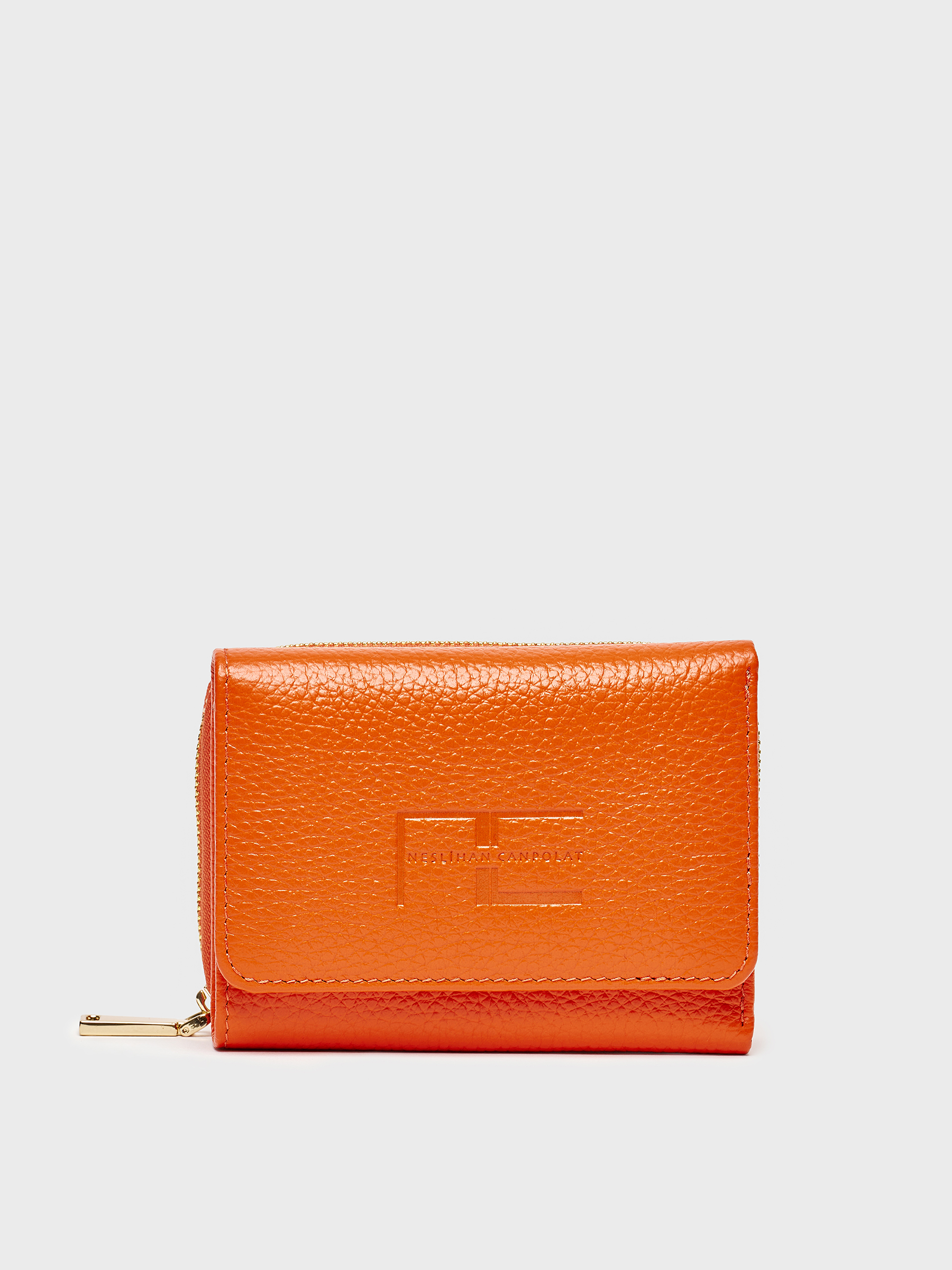 Turuncu rengiyle göz alıcı ama abartısız. Altın renkli fermuar detayı ise zarif bir tamamlayıcı. İç kısmında yer alan kart bölmeleri sayesinde ihtiyacınız olan her şey düzenli bir şekilde elinizin altında.