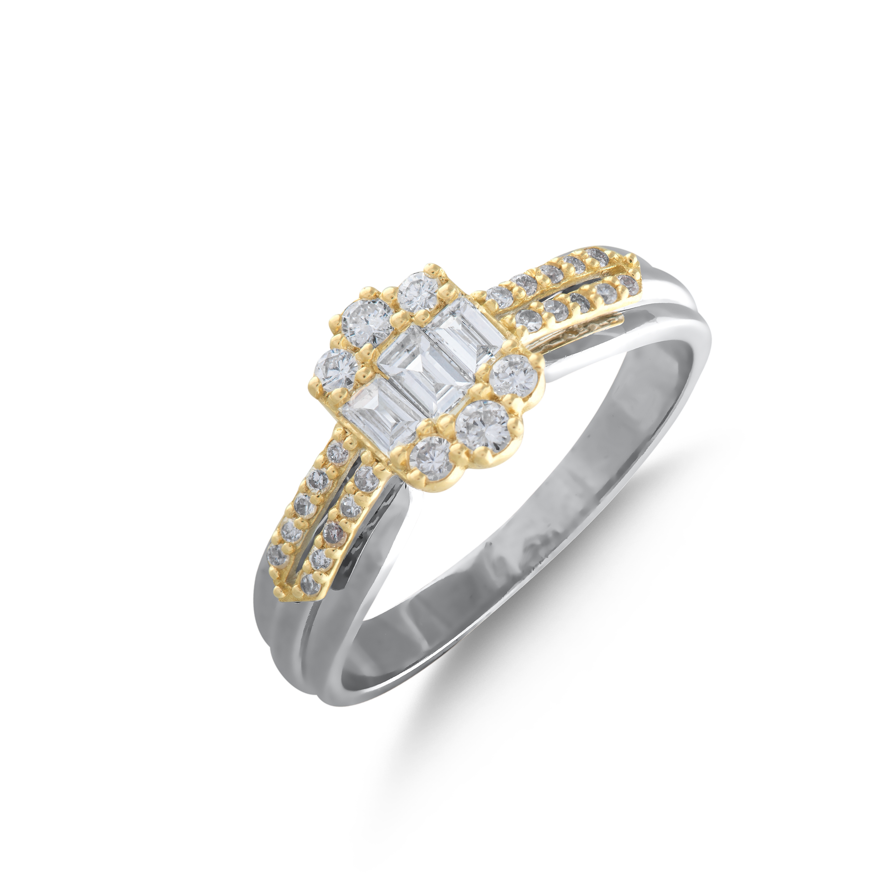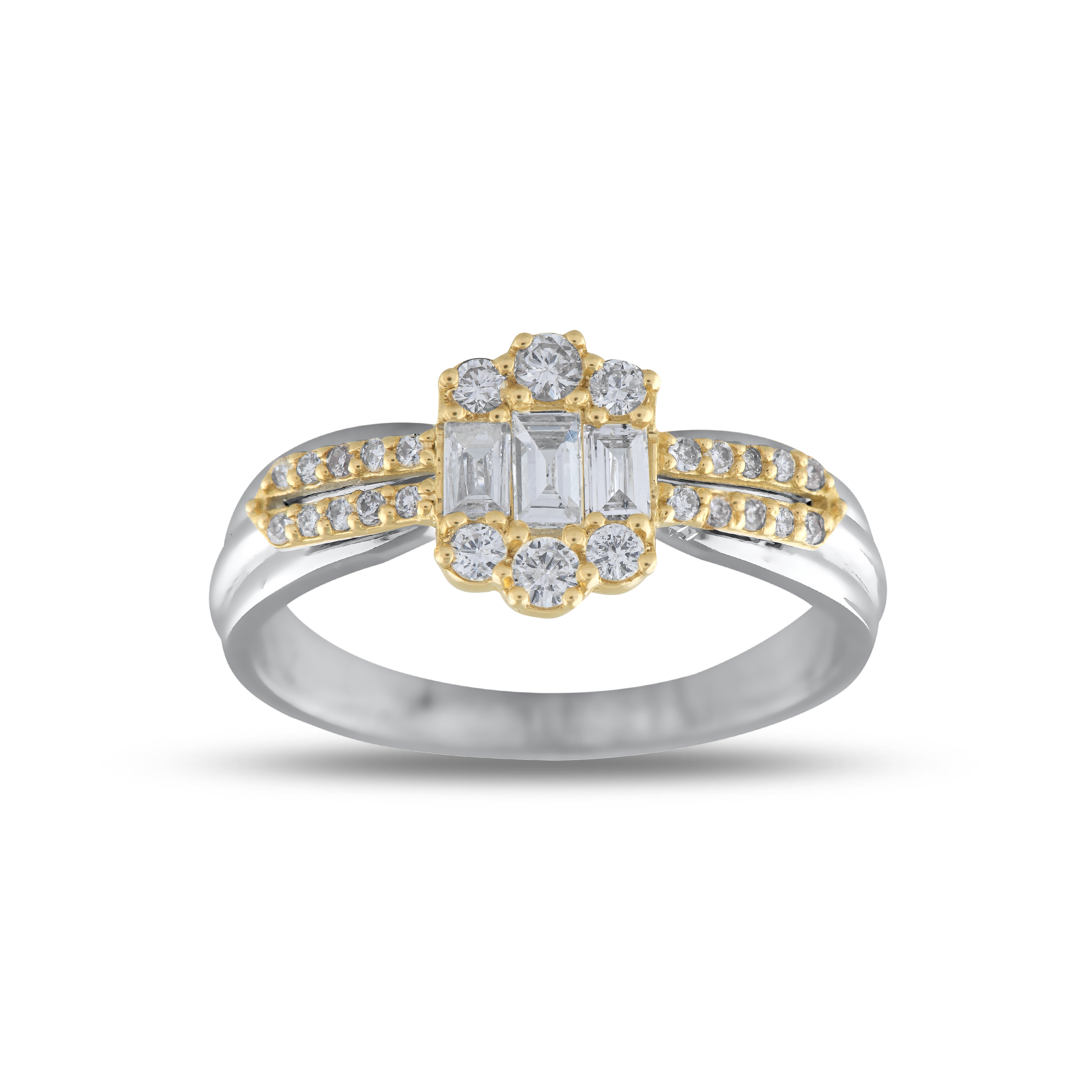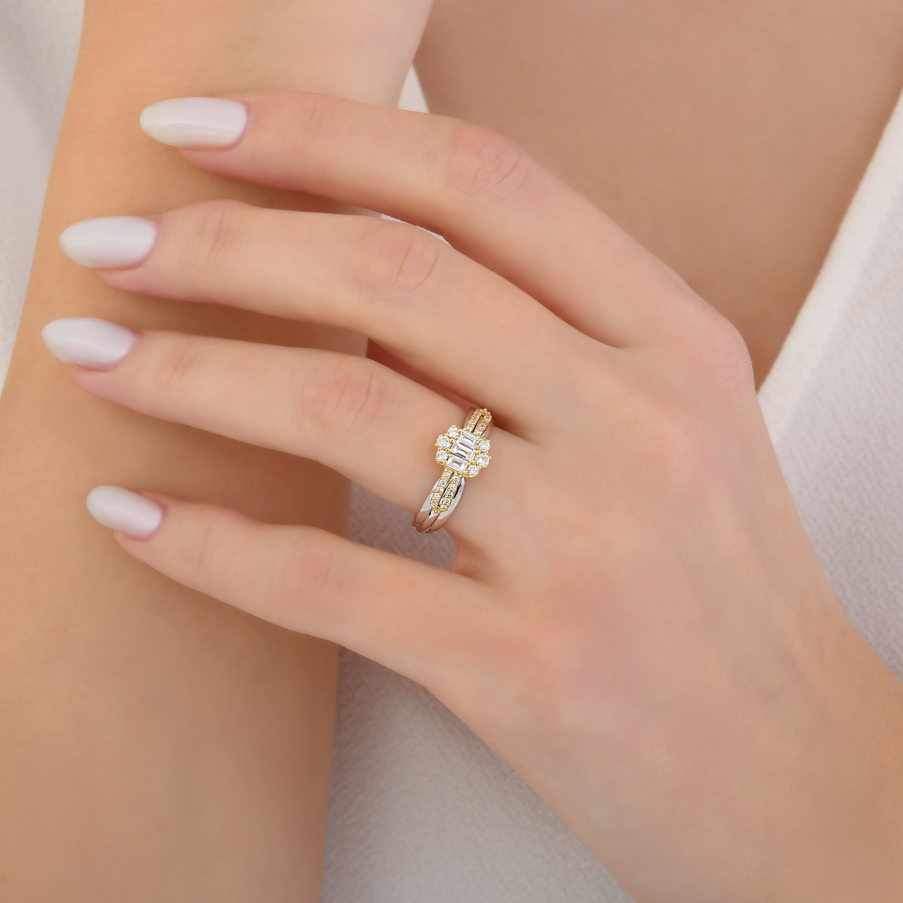 18 AYAR GOLD VE BEYAZ ALTIN 0,44 KARAT BAGET PIRLANTA YÜZÜK
