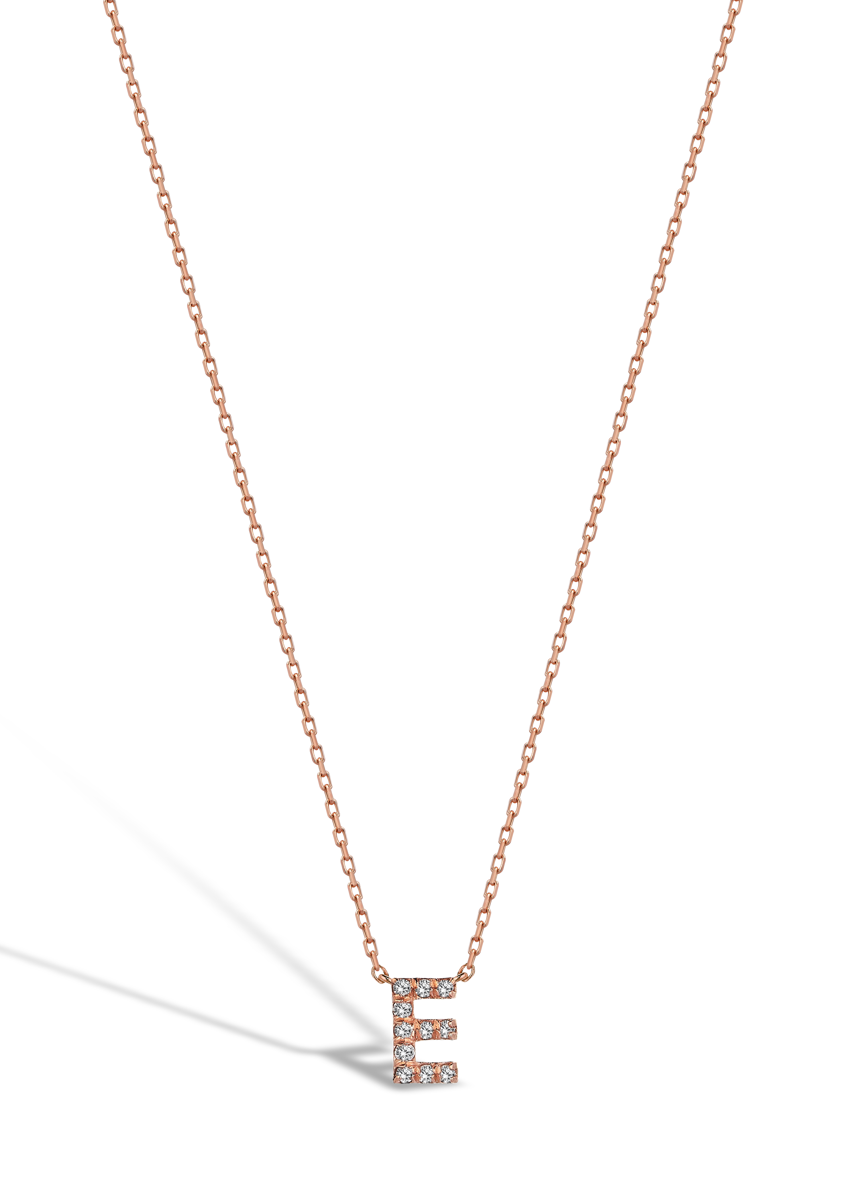 14 AYAR ROZ ALTIN 0,05 CT E HARFİ PIRLANTA KOLYE